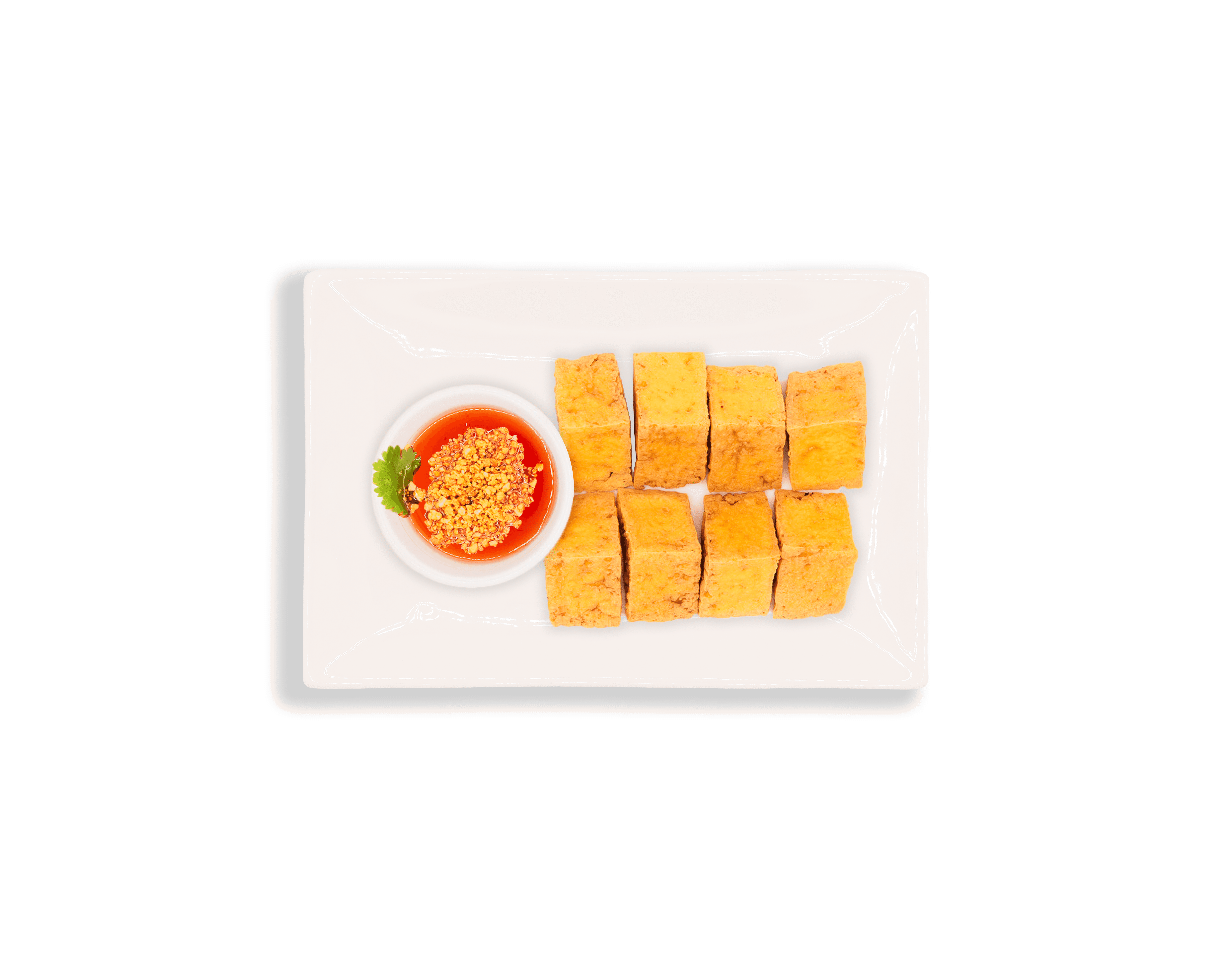 Deep fried tofu served with plum sauce and sprinkled with ground peanuts.