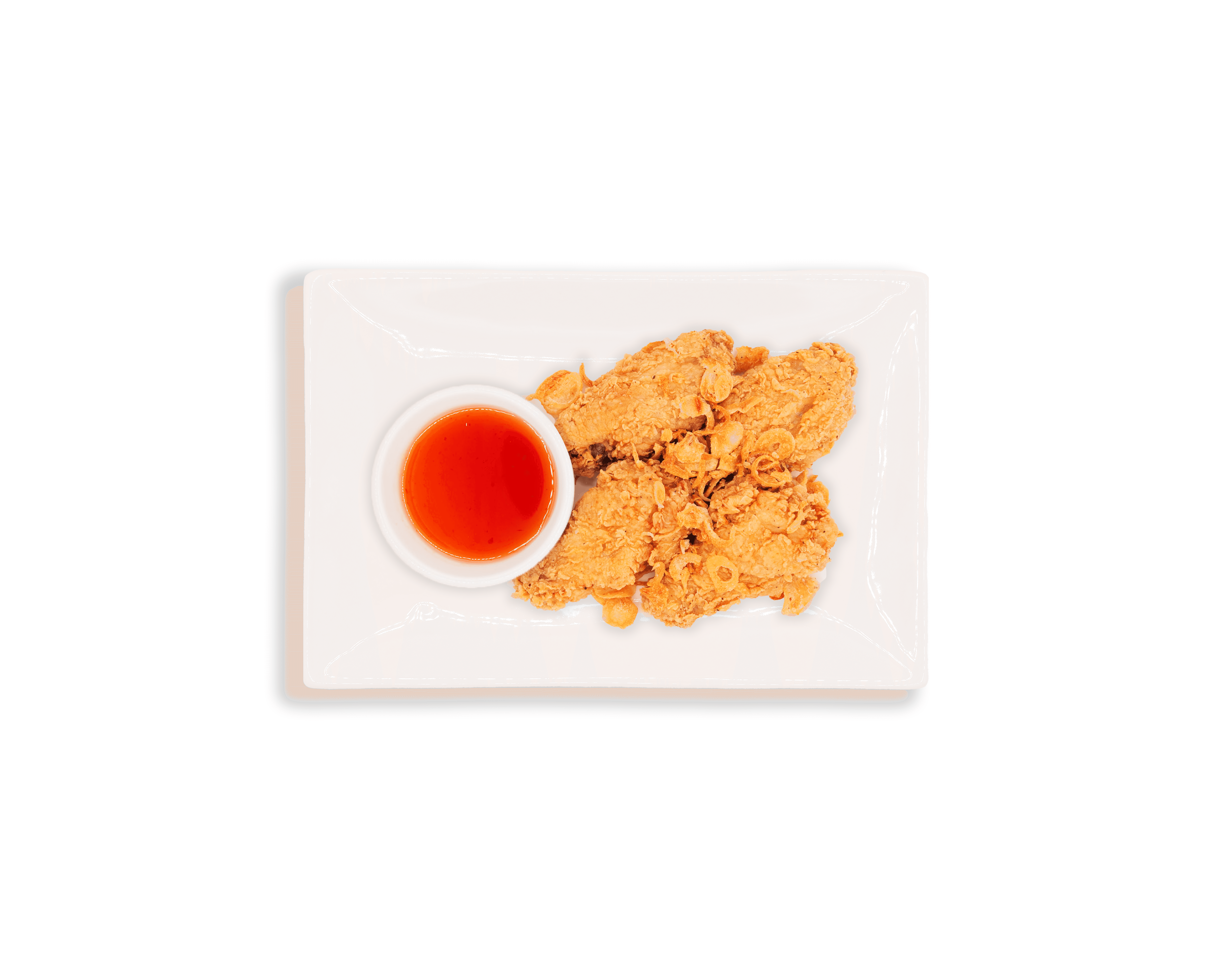 Fried chicken wings served with sweet chili sauce.
